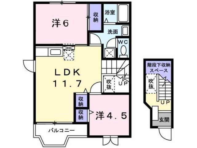 | 間取り詳細 | LDK11.7畳 、 洋室6畳 、 洋室4.5畳 |