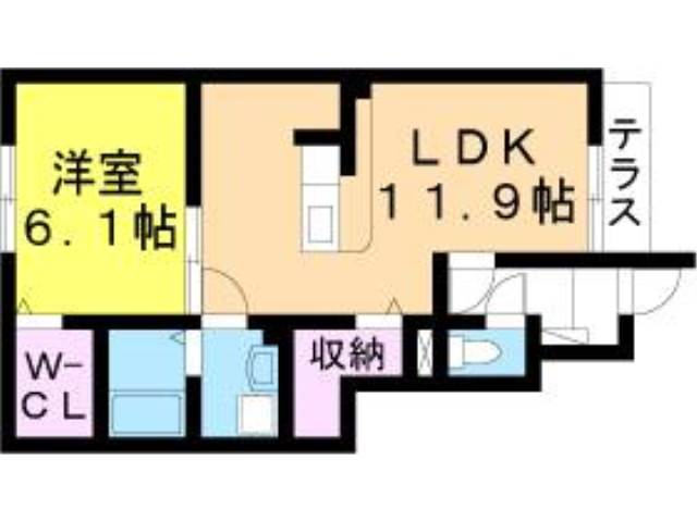 | 間取り詳細 | 洋室6.1畳 、 LDK11.9畳 |