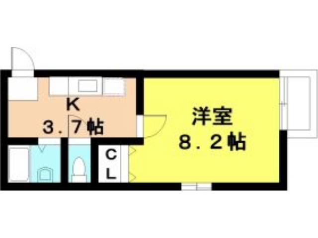 | 間取り詳細 | K3.7畳 、 洋室8.2畳 |