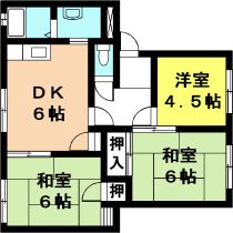| 間取り詳細 | DK6畳 、 洋室4.5畳 、 和室6畳 |