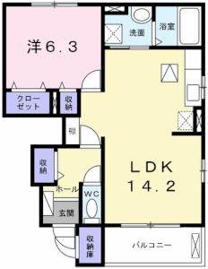 | 間取り詳細 | LDK14.2畳 、 洋室6.3畳 |