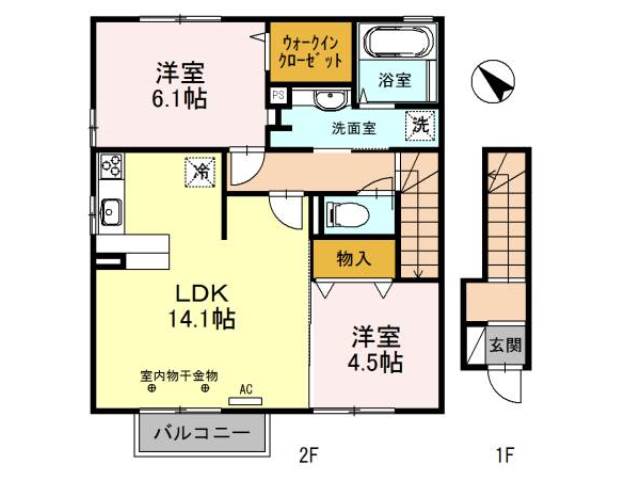 | 間取り詳細 | LDK14.1畳 、 洋室4.5畳 、 洋室6.1畳 |
