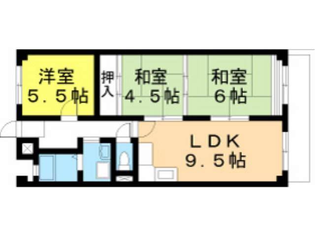 | 間取り詳細 | 和室6畳 、 和室4.5畳 、 洋室5.5畳 、 LDK9.5畳 |