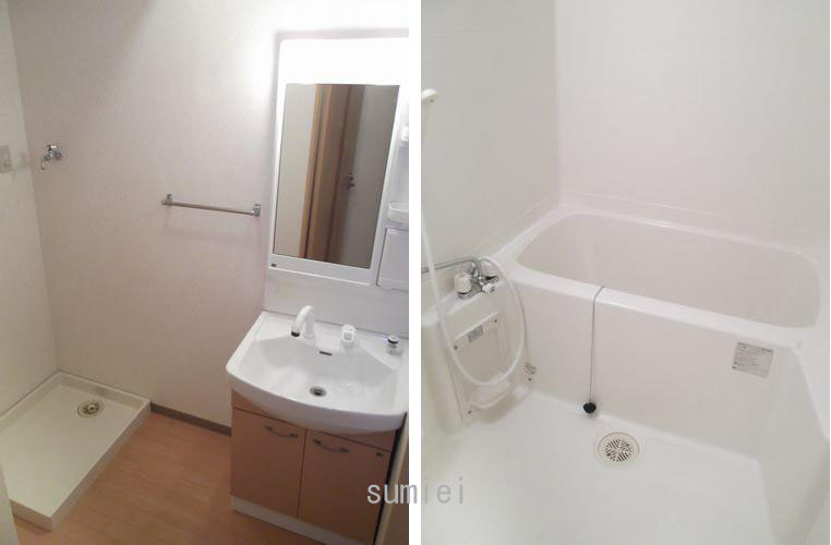 | 設備 | 上水道(公営水道)、下水道(公共下水)、ガス(プロパン)、インターホン(TVモニター付き)、駐輪場、バイク置き場、日当り良好、フローリング、ベランダ・バルコニー、収納スペース、バス・トイレ(別室)、シャワー、追い焚き、浴室乾燥機、給湯、シャンプードレッサー、洗濯機置き場(室内)、カウンターキッチン、エアコン(1台)、BS、地デジ(UHF)、光ファイバー | ||