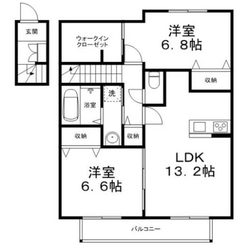 間取り詳細 LDK13.2畳 、 洋室6.6畳 、 洋室6.8畳