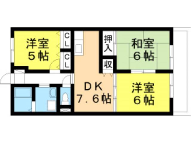 | 間取り詳細 | DK7.6畳 、 和室6畳 、 洋室6畳 、 洋室5畳 |
