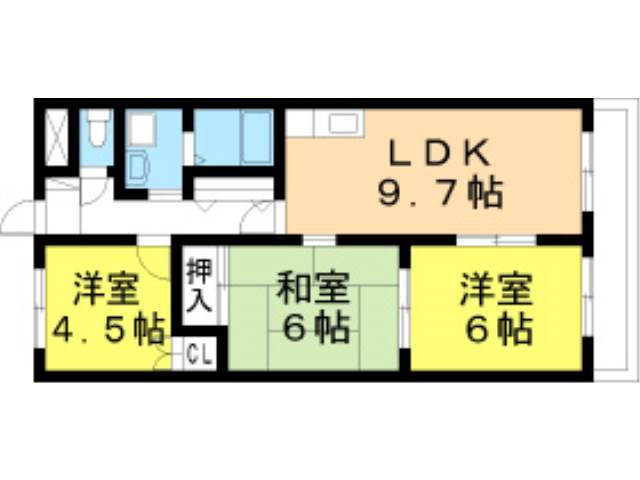 | 間取り詳細 | LDK9.7畳 、 和室6畳 、 洋室6畳 、 洋室4.5畳 |