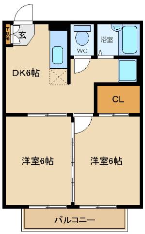 間取り詳細 DK6畳 、 洋室6畳 、 洋室6畳