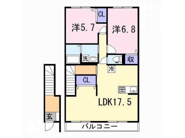| 間取り詳細 | LDK17.5畳 、 洋室6.8畳 、 洋室5.7畳 |
