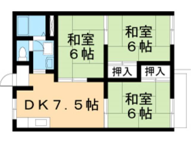 間取り詳細 和室6畳 、 DK7.5畳 、 洋室6畳 、 和室6畳